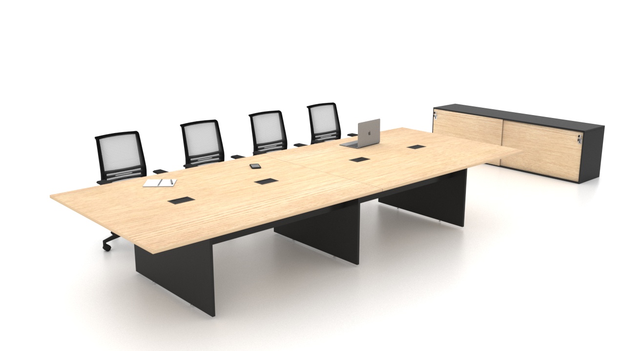 As mesas de reunião da Linha M permitem grandes variações e opções de acessórios diante à necessidade do usuário. Mesas sobre armários, credenzas e gaveteiros garantem ao colaborador um amplo espaço de trabalho e possibilitam a armazenagem segura de documentos.