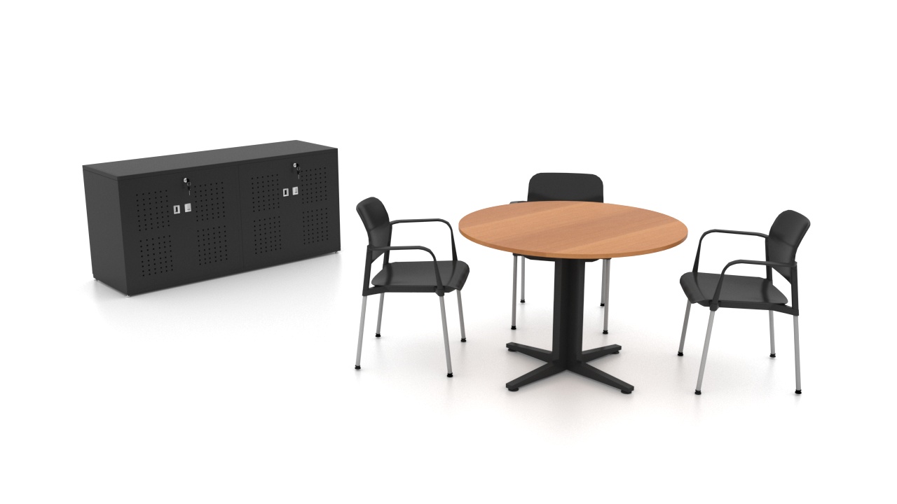 A Mesa Redonda é apropriada para rápidas reuniões na qual são tomadas decisões importantes. Interagem com elegância em salas individuais ou de diretoria.